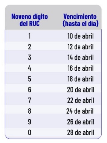 Hasta abril de 2025, todas las sociedades, tanto las que pertenecen al Régimen General como al Régimen RIMPE Emprendedores, deben realizar la declaración y pago del Impuesto a la Renta del ejercicio fiscal 2024, conforme el noveno dígito de su RUC: