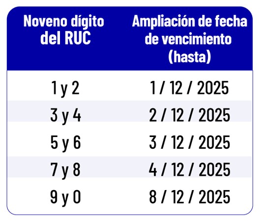 Los contribuyentes deberán realizar sus declaraciones según el noveno dígito del Registro Único de Contribuyentes (RUC), como se detalla en la siguiente tabla: